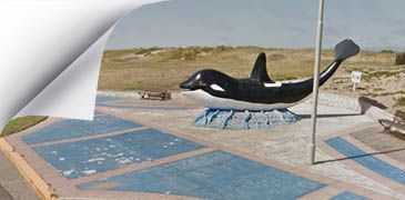 Desde la salida del muelle, realizamos cien metros (1 cuadra) a pie por la costanera, hasta donde nos espera nuevamente el bus, en el Paseo de la Orca. Un luegar ideal para tomarse fotografias, la parada obligada de todo visitante de Mar de Ajo... alli nos tomaremos la tan tradicional fotografia y se continua viaje hacia el proximo punto, el 6, que es sin mas que el Hito de la Union tambien sobre la Av. Costanera donde los observaremos desde el bus. |