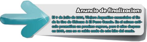Creandose el 1 de Julio de 2008, Chiozza & el Perro Canelo, se emitio durante siete temporadas, siendo asi que en la del 2008 se emitieron 14 tiras, en 2009 se lanzaron 26 tiras (siendo mas que las cronologicas, ya que se proporcionaban dos por mes), en 2010, se producieron 24 ediciones, las mismas en 2011. En el año 2012 comenzaron a producirse atrazos en lastiras, se proporcionaron 23 ediciones (una menos de la estipulada) pero para el año 2013, se publicaron 24 tiras. |